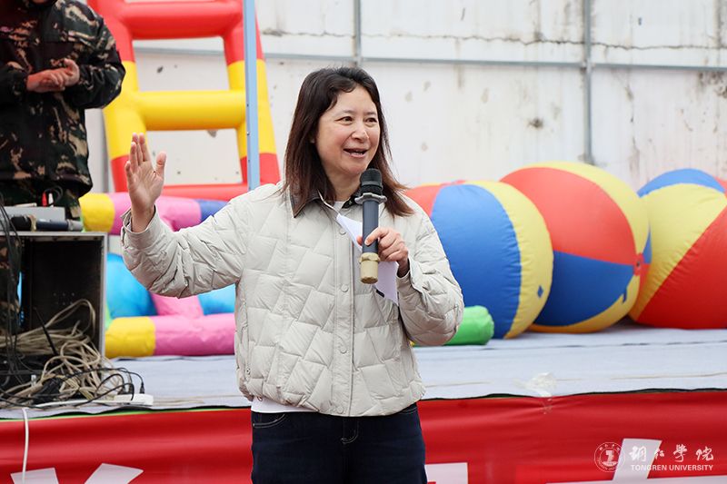 活动伊始,全体人员在操场整队集合。周曾艳代表学校,向全校全体女教职工、女同学以及所有在幕后默默奉献的女性家属致以诚挚的问候和崇高的敬意。她指出,全校广大女教职工立足岗位、勇挑重担,在教学上精益求精,在科研上勇攀高峰,在育人中润物无声,以实干实绩撑起了学校发展的“半边天”,充分展现了新时代高校女性的敬业与风采。女性教师和同学们,以独特的魅力和不懈的努力,成为推动学校发展不可缺的重要力量。她祝愿女同胞们节日快乐,并希望大家在各自的领域发光发热,为全面建成特色鲜明的高水平应用型大学而努力奋斗,共同书写中国式现代化beat365中国唯一官网实践更加辉煌的篇章。