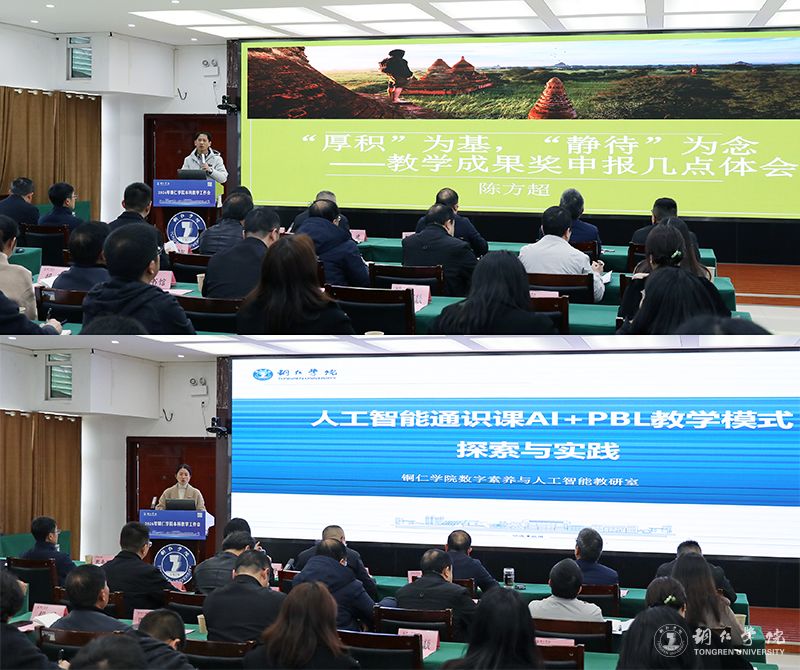 会上,大健康学院教师陈方超分享了教学成果奖申报经验,大数据学院教师胡萍分享了人工智能通识课AI+PBL教学模式的探索与实践。