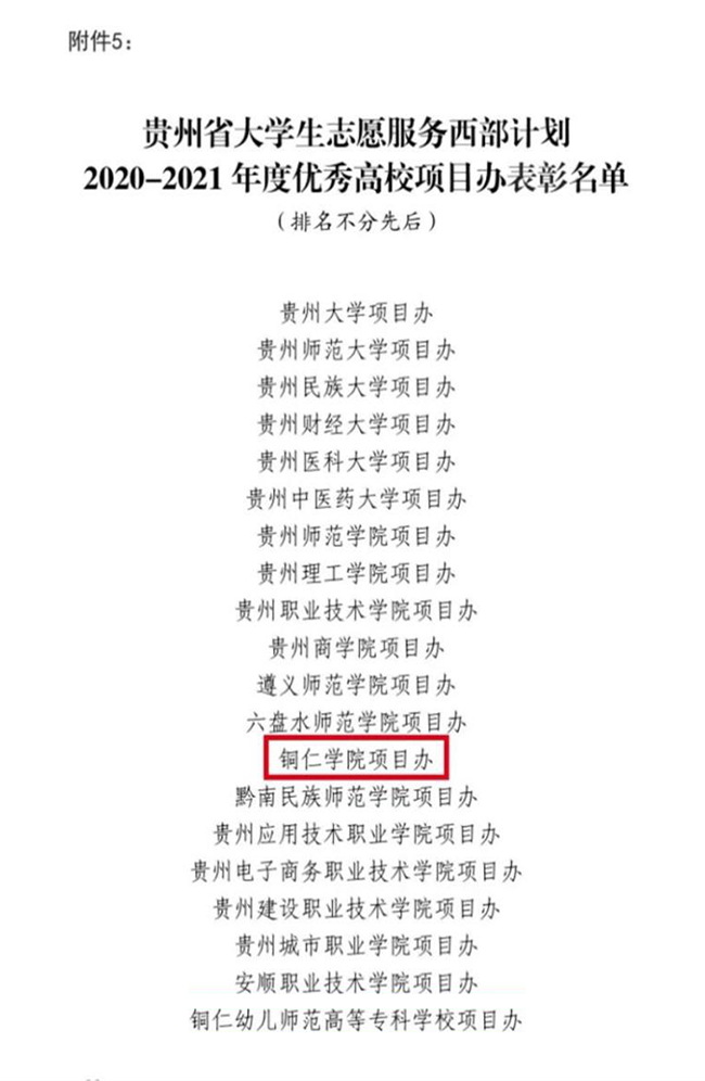 近日,贵州省大学生志愿者服务西部计划各级项目办表彰结果出炉,beat365官网西部计划项目办荣获贵州省大学生志愿服务西部计划2020-2021年优秀高校项目办表彰。