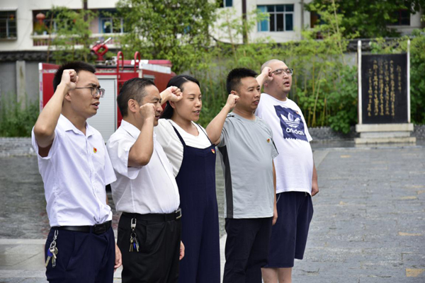 小组党员在印江县木黄会师纪念馆前重温入党誓词