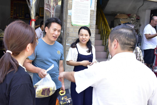 慰问在沿河沙子空心李基地参加社会实践活动的杨驰同学时,暖心小组还慰问了学校下基层助农的“李子博士”张绍阳教授。张绍阳教授是贵州省万名农业专家服务“三农”行动科技特派员,多年来扎根沙子街道开展科技服务。在他的感召下,每年暑假都有一些学生到沙子参加社会实践活动,帮助果农进行公益促销和线上销售市场管理。暖心小组对张绍阳博士和同学们积极服务乡村特色产业发展,助力乡村经济建设的行为给予高度赞扬,勉励杨驰同学向张绍阳教授学习,用知识回报社会、建设家乡。