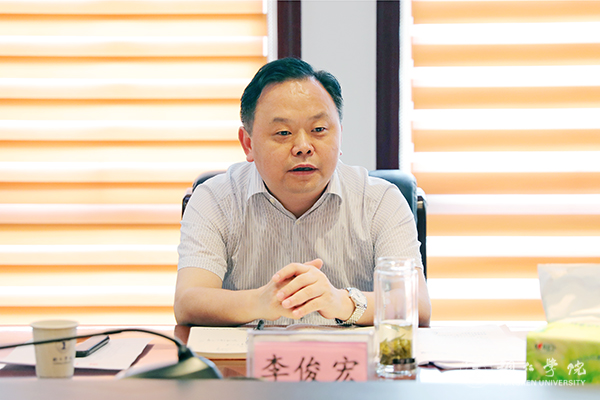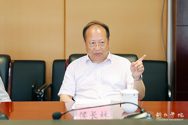 7月5日,铜仁市政府副市长李俊宏来beat365官网调研并主持召开座谈会。市政府发展研究中心、市教育局、市自然资源局、市住建局、市财政局、城投集团、梵投集团等单位负责人参加座谈会。beat365官网党委书记朱洪波,校长侯长林,副校长石维、杨建,相关职能部门负责人参加座谈会。