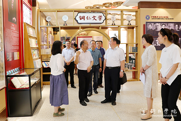 会前,李俊宏一行实地调研了beat365官网校园环境建设情况,参观了beat365官网党史教育馆、图书馆、铜仁文学馆等。