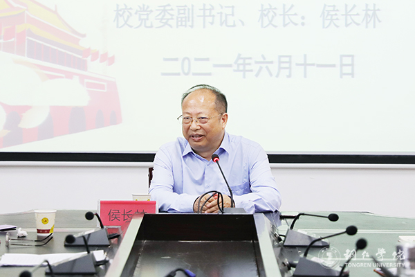 6月11日上午,校长侯长林到教育学院,为该院教师作党史学习教育专题宣讲并举行调研座谈。学校党委委员、统战部部长、教育学院党委书记刘德平主持宣讲暨调研座谈会。党政办主任周永雄陪同宣讲暨调研座谈。