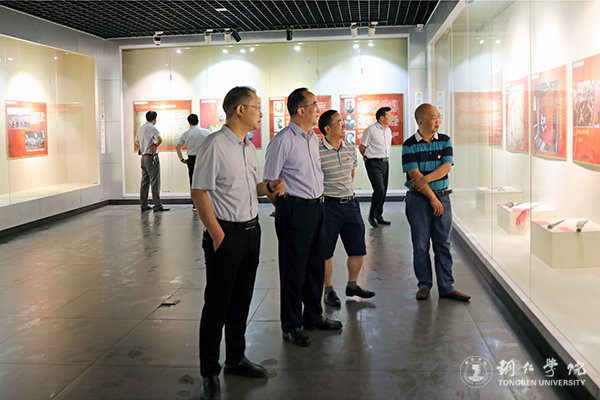 在展览现场,浏览一帧帧泛黄的旧照片,仿佛在翻动一幅幅革命先烈浴血奋战的历史画卷,又似乎在聆听一曲曲铜仁儿女自强不息的英雄壮歌。从展出的历史资料中,大家了解到,中国共产党领导的红色武装在铜仁建立了云贵地区第一个红色政权一一黔东革命根据地;1934年10月24日,贺龙、夏曦、关向应领导的红三军与任弼时、萧克、王震领导的红六军团在木黄会师,这是红军长征史上的第一次胜利大会师;从黔东大地,走出了杰出的无产阶级战士、红军高级将领、全国“双有”模范人物周逸群、旷继勋;在抗日战争、解放战争、抗美援朝时期,铜仁儿女不畏艰险,不怕牺牲,为民族独立和人民解放事业,立下了不可磨灭的历史功勋。大家表示,要把革命先辈的英勇事迹传承下去,从光荣革命传统中汲取精神力量,在新时代的长征路上,继续为党和人民的事业、为学校的发展奋力拼搏。