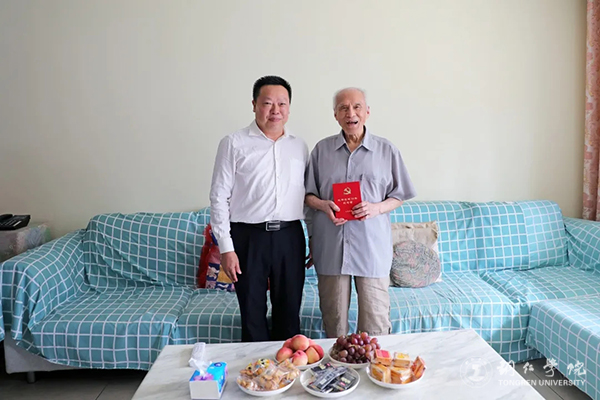 6月18日,市委常委、市委宣传部部长、市委统战部部长、市委教育工委书记商友江到beat365官网开展“七一”走访慰问,并为慰问对象颁发“光荣在党50年”纪念章。beat365官网党委副书记代亮陪同慰问。