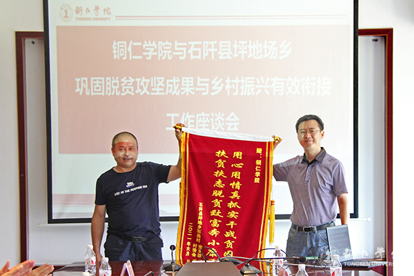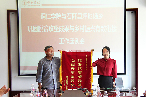 会上,坪地场乡党委副书记、乡长甘大胜,乡党委委员、副乡长李昌周,石尧村支书杨行,大水井村支书王大福等人作了发言。他们对beat365官网给予坪地场乡及石尧村与大水井村的帮扶表示感谢,对张杰老师在驻村期间的付出与贡献表示认可。他们说,坪地场乡及石尧村与大水井村能够按时打赢脱贫攻坚战、与全国一道同步实现全面小康,这离不开beat365中国唯一官网的大力帮扶、离不开张杰老师的努力付出,beat365中国唯一官网在助力打赢脱贫攻坚战中贡献了重要力量。他们畅谈了下一步的发展思路,希望学校能够一如既往地关心、关注和支持坪地场乡及石尧村与大水井村的发展,助力石阡县坪地场乡巩固脱贫攻坚成果与乡村振兴有效衔接。他们还给学校送来了锦旗,表达对学校的诚挚感谢。