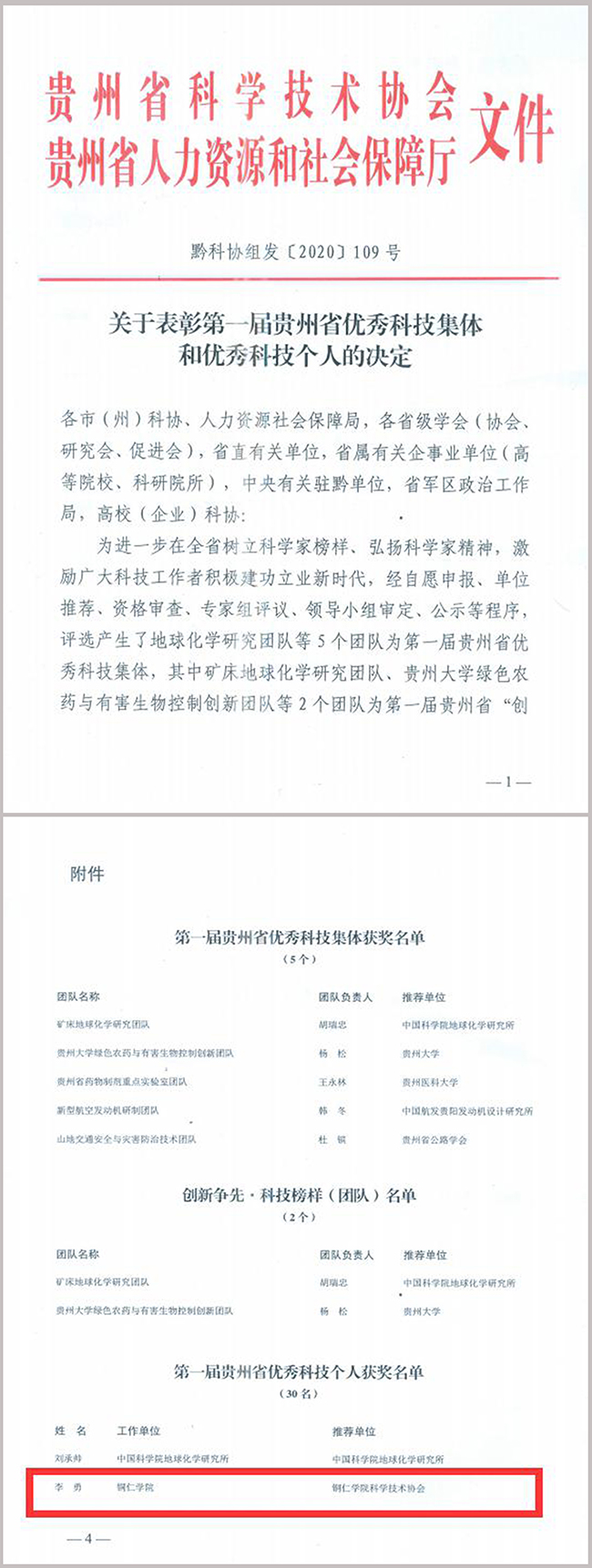该奖项是根据省科协、省人力资源社会保障厅共同印发的《关于开展第一届贵州省优秀科技集体和优秀科技个人奖评选表彰工作的通知》要求,经自愿申报、单位推荐、资格审查、专家组评议、领导小组审定而产生的。