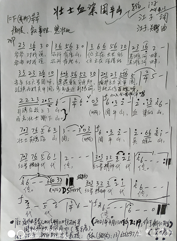 歌曲《壮士血染困牛山》(草稿)