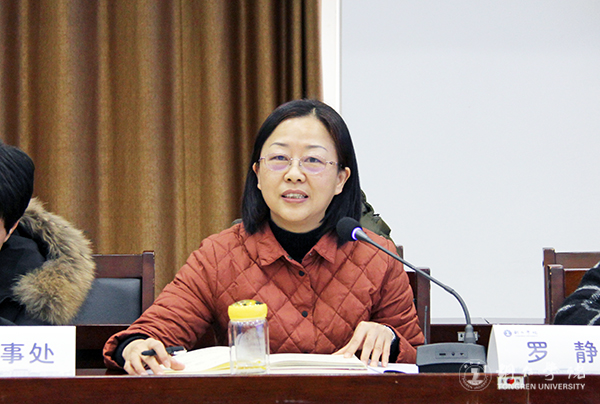 最后,罗静作了讲话。她强调,师范认证是离不开学院的努力、教师的参与、职能部门的参与,师范认证是人人参与的认证。她从教师职能、一线教师上课、质保环节、师范认证常态化工作和专家组进校考查、自评报告的撰写等个方面,谈了自己的观点,同时也对2021年参与师范认证的四个专业给予厚望。