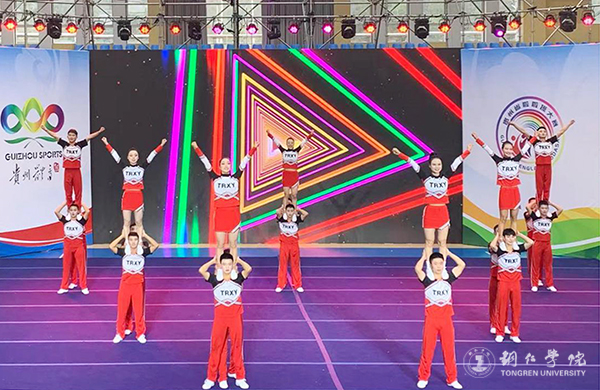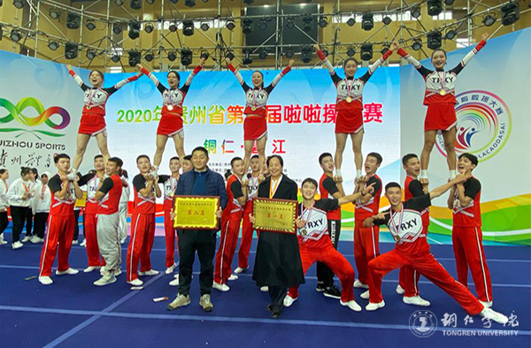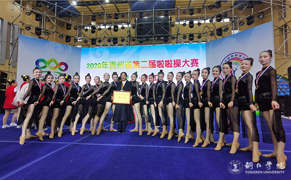 11月29日,2020年贵州省第二届啦啦操大赛在铜仁市碧江落下帷幕。本次大赛吸引了来自全省各小学、中学、大学及俱乐部共85支代表队2000余名选手参加。beat365官网派出了由副校长罗静担任领队,大健康学院马宁、周智红老师担任教练,50余名学生组成的啦啦操队参加了本次大赛大学组的比赛,并在五个项目中获得了优异成绩。