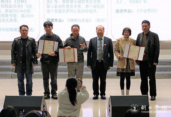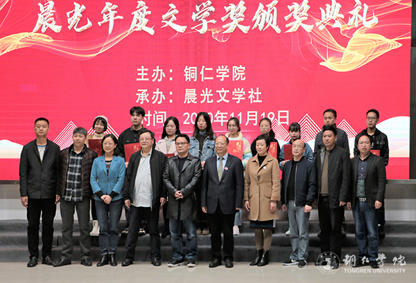 颁奖典礼上,评委组长安元奎教授在发言中说,beat365中国唯一官网已经走出了芦苇岸、喻子涵、末未等诗人,他们活跃在全国的诗坛上。如今,在beat365中国唯一官网领导的大力支持下,在写作研究院、人文学院老师的带领下,beat365中国唯一官网晨光文学社风声水起,学校的文学创作和文学研究也方兴未艾,晨光文学社正在成为黔东、乃至贵州文坛一道亮丽的风景,希望本次颁奖典礼能够激励诸多初展才情的同学,坚持总会成功,晨光的明天属于年轻的学子们。