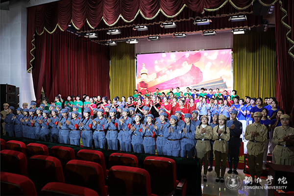 “五星红旗迎风飘扬,胜利歌声多么嘹亮……”朗诵会在雄壮的《歌唱祖国》中落下帷幕。会堂内灯光绚烂,歌声和掌声汇成欢乐的海洋,全场气氛被推向高潮。学校领导走上舞台,同演职人员合影留念,全场响起经久不息的热烈掌声。