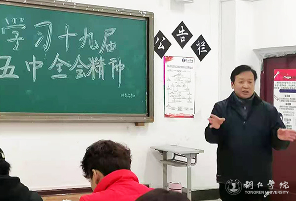 班会上,吴先佳与同学们一起学习了党的十九届五中全会精神,并作了交流发言。他指出,十九届五中全会是在我国决胜全面建成小康社会取得决胜性成就、“两个一百年”奋斗目标进入历史交汇点、全面建设社会主义现代化国家新征程即将开启、向第二个百年奋斗目标进军的历史性时刻,召开的一次重要会议。他要求,同学们要深入学习党的十九届五中全会精神,不断提升思想政治素养,将十九届五中全会精神与日常的学习生活结合起来,学以致用。