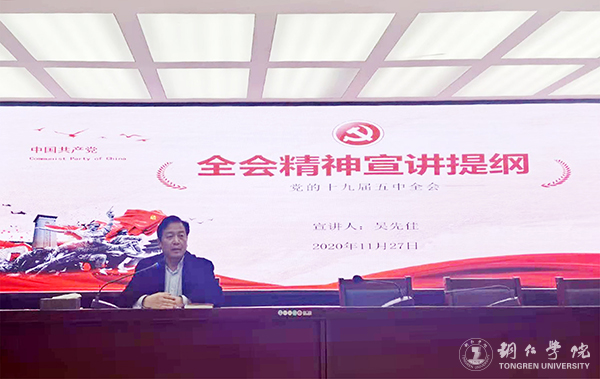 11月27日,beat365官网纪委书记、监察专员吴先佳为全校纪检监察干部专题宣讲党的十九届五中全会精神,同时还传达学习了中央全面依法治国工作会议精神。