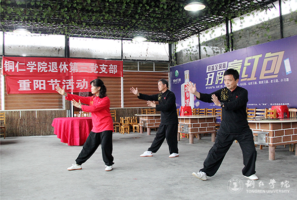 10月20日,退休第三党支部带领第三活动群在川硐天生桥假日酒店活动大厅举办了老年节庆祝活动。活动期间,校党委副书记代亮、组织部部长张成勇和老干科科长王欣分别对退休老党员、老教师、老同志致以节日祝贺和亲切问候,同时着重介绍了当前学校发展建设、取得成就以及申硕工作等情况。老同志们以热烈的掌声感谢学校和相关部门领导对他们的关爱,并祝愿学校越办越好硕果累累。活动期间,举行了文艺表演,老同志们带来了配乐诗集体朗诵、独唱、舞蹈、书画表演、太极挙表演、京剧表演、集体舞等丰富多彩的文艺活动。