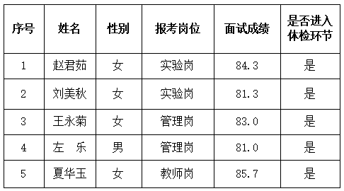 根据《beat365中国唯一官网2025年简化程序招聘博士配偶工作方案》及学校相关工作安排,现将面试成绩及进入体检环节人员名单进行公示: