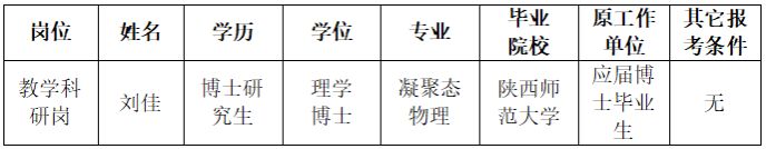 根据《beat365中国唯一官网2024年高层次人才引进简章》,经过面试(含专业测试)体检和综合考察,现将拟聘用人员刘佳同志进行公示。