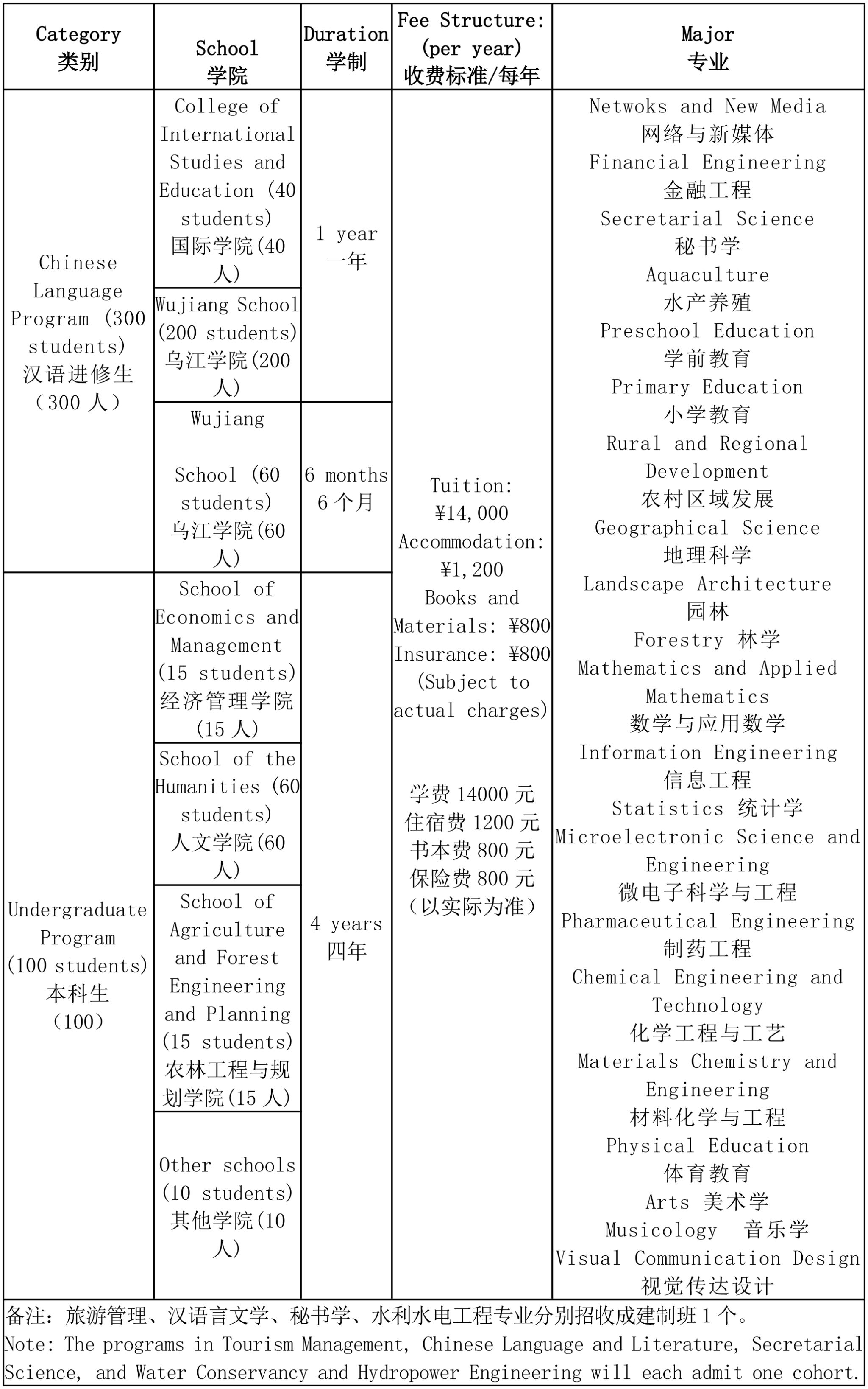 1. Students with HSK6, HSK5 or HSK4 scores ≥240 may apply for the Tongren University President’s Scholarship (priority given to nominees from overseas partner institutions and outstanding alumni). Successful applicants will receive the President’s Scholarship covering 100% of their tuition fees.