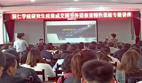 下午两点,梁成艾教授从“什么是教学艺术?为什么要讲教学的艺术性?教学的艺术性主要体现在哪些方面?怎样提升教学的艺术?”这四个维度,以问题为导向,为该校教师进行了《教学的艺术》专题讲座。讲座中梁成艾教授设置了多种有趣味的教学活动,极大地调动了现场教师的参与性及学习兴趣。