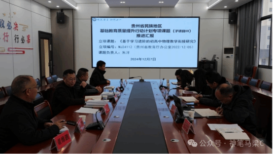 2024年12月7日上午专家组一行参加了石阡民族中学朱洋老师课题汇报推进会并作相关指导,梁成艾教授以“六个度”针对性地解答了朱洋老师在课题推进过程中的问题,获得课题组成员的一致认同。紧接着专项小组开展了石阡民族中学基础教育质量提高专项指导会。会上,专项小组各成员针对学校汇报情况纷纷提出改进方法,梁成艾教授则针对项目学校的关键问题与核心困难提出了“五个重”的指导意见,获得参会人员的一致认可。