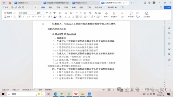 会议期间,各成员按照先前分配的主题任务分别将DeepSeek与自己学科方相结合所做的大纲进行了详细的汇报讲解,并充分讨论互相点评,交换彼此意见。