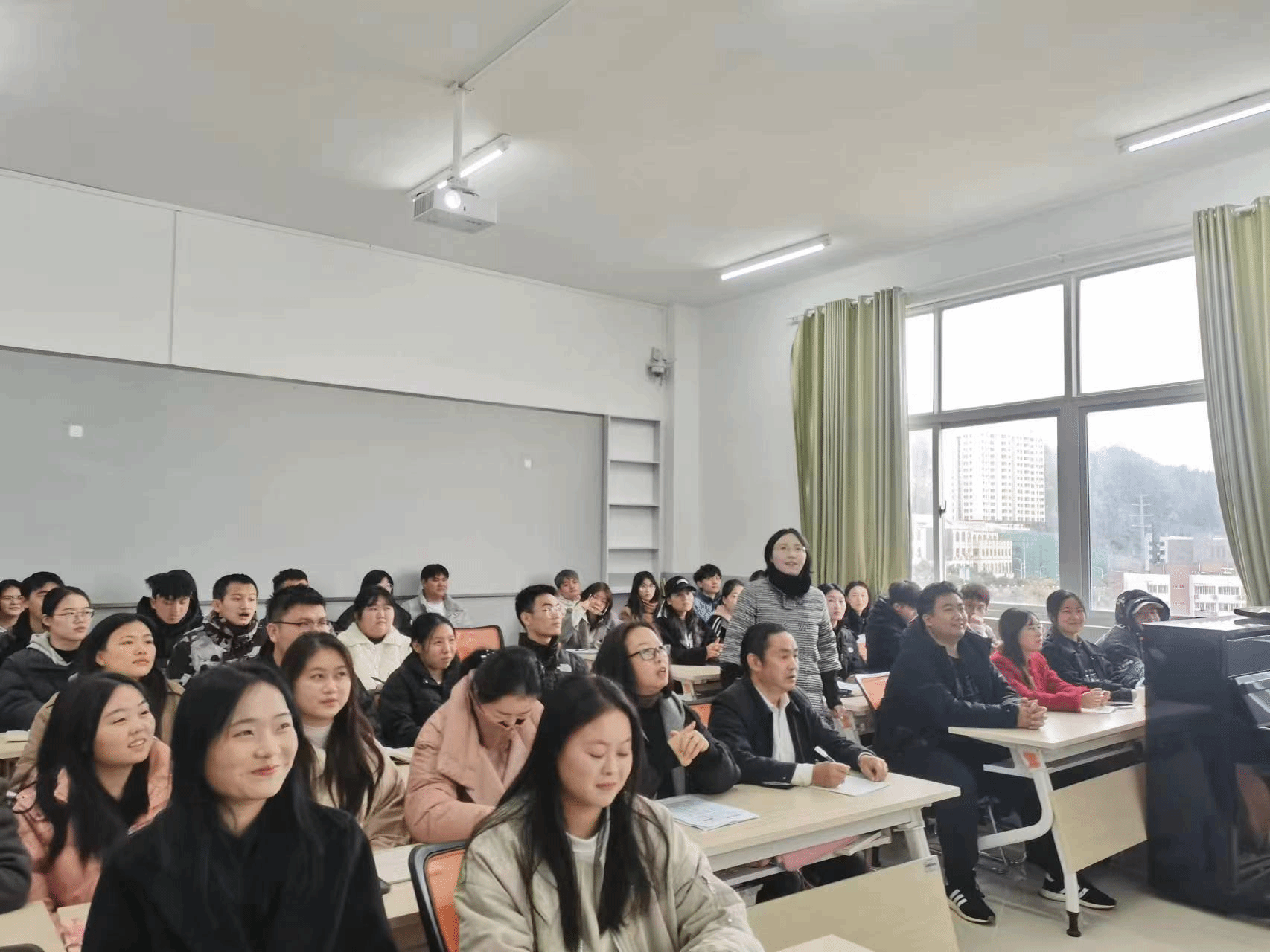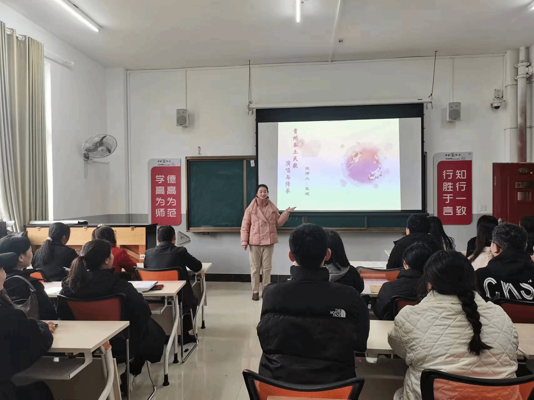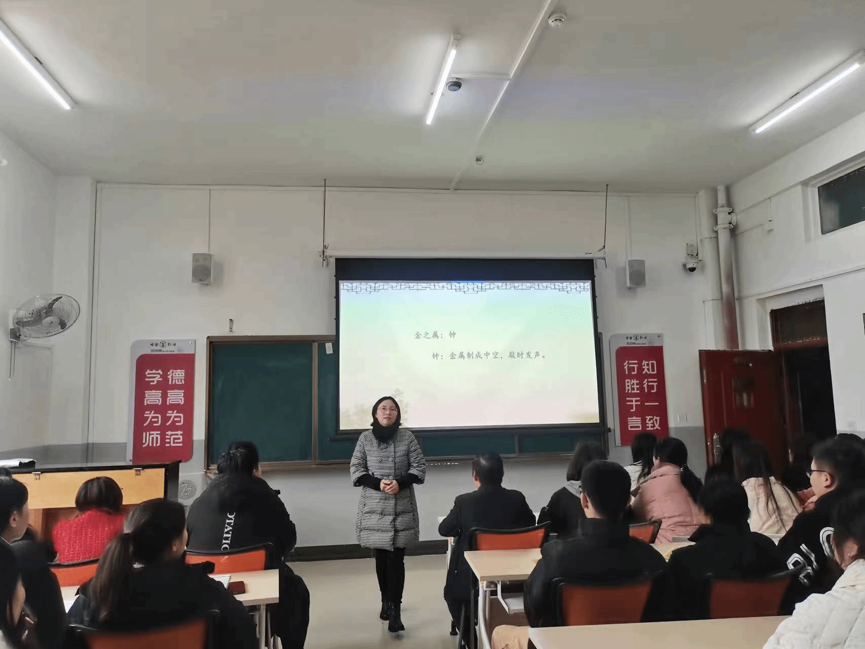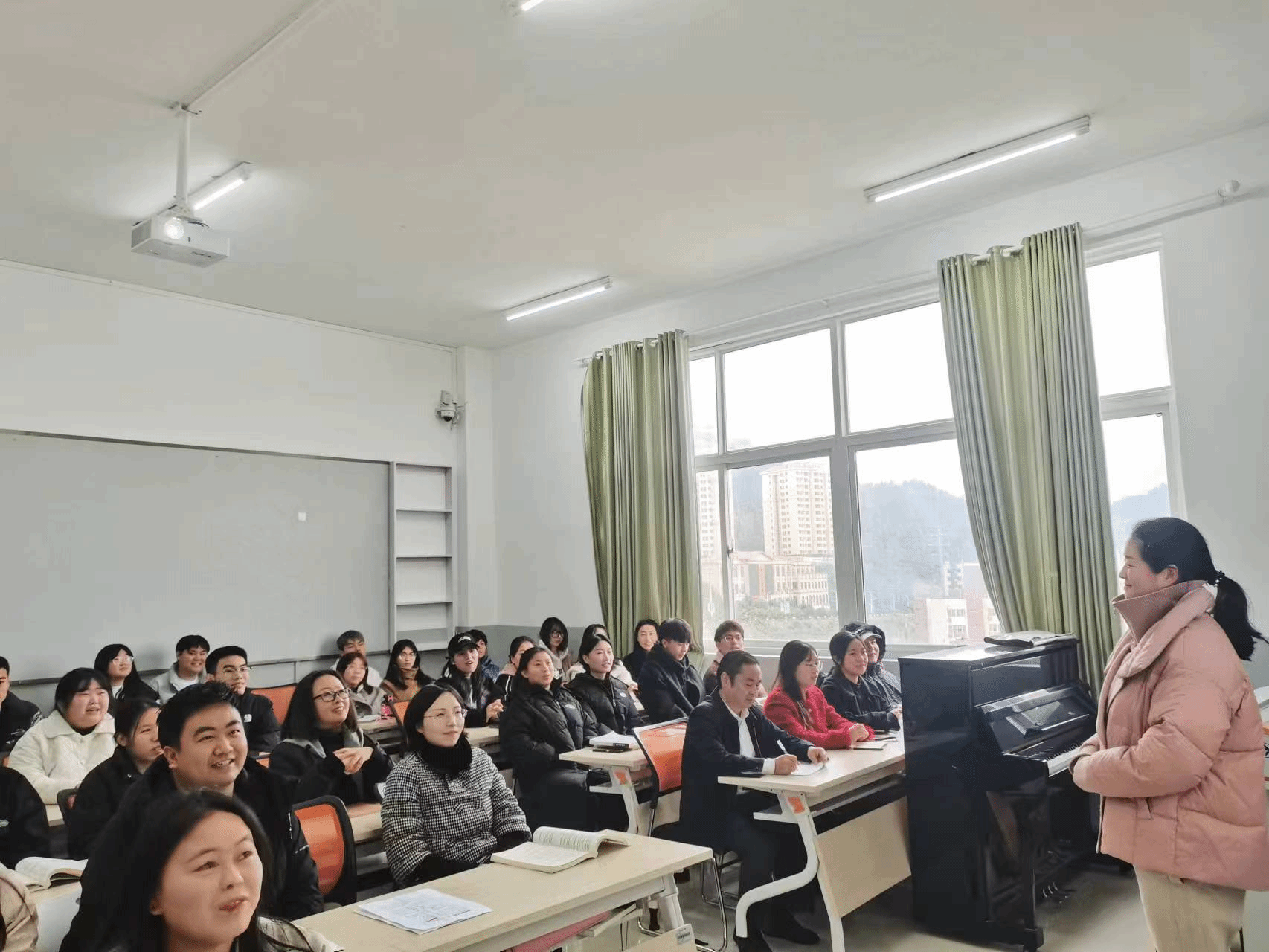 此次研讨活动分三个部分,首先,由我院王中老师示范课《中国音乐史与名作欣赏》,讲授主题是《周秦时期乐器——磬、编钟》,通过讲述周期秦时期的“八音”分类,让学生充分了解西周至春秋战国时期的乐器,感受到中国传统乐器的魅力。其次,由张妮老师进行示范授课《声乐》,主题为《贵州本土民歌的演唱与传承》,贵州本土音乐作品蕴含着丰富的本土文化和人文精神,体现了本土人民的生活、社会现象等,通过本土歌曲的传唱,弘扬与传承优秀本土文化。在课堂上也观察到学生们对老师们授课产生了非常浓厚的兴趣。最后,崔德虎老师对老师们的授课提出建议,弘扬与传承中国优秀民族音乐文化,是每位学生和老师的责任和义务。麻晔斐老师分享了自己课程建设及教学比赛的经验,建议线下课程也需要有智慧教育平台的使用,充分利用智慧教育平台对课程进行线上建设,鼓励线上线下混合运用,提高学生的学习效率,提升教学质量。