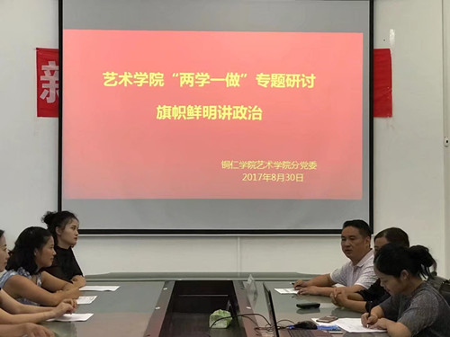 2017年8月30日下午,艺术学院分党委在院会议室召开“两学一做”学习教育暨 “旗帜鲜明讲政治”专题学习研讨会,此次研讨会由党委书记崔德虎主持,全院教师党员参与学习研讨。