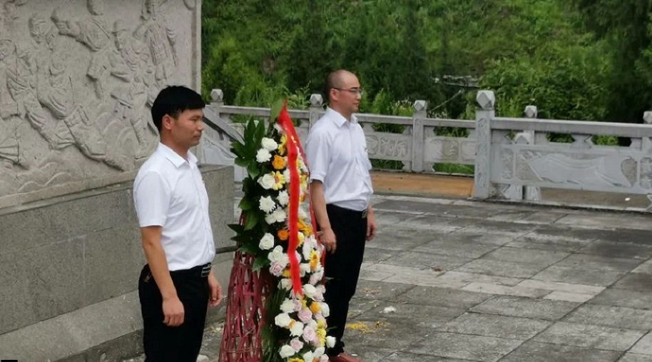 在纪念碑前,全体党员庄严肃立面向纪念碑鞠躬,缅怀革命先烈,为革命烈士敬献了花篮,并认真聆听甘溪乡党政办文兰同志介绍那段可歌可泣的英雄史,深切缅怀革命先烈,学习他们坚定信念、勇于牺牲、赤诚为民、敢于牺牲的崇高精神。随后,党委书记徐美带领全体党员面对党旗重温入党誓词,实地参观了甘溪烈士园,进一步加深了同志们对甘溪遭遇战这段党史的认识和了解。