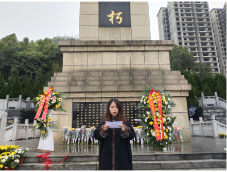 活动开始,首先,我院师生全体默哀一分钟,沉痛怀念祖国的英雄们,表达对革命先烈诚挚的敬意和深深的怀念。哀思过后,全体党员排着整齐有序的队伍,缓步走到烈士墓碑前,带着敬畏之情向先烈鞠躬、献上鲜花、擦拭墓碑。然后,徐秋逸老师向党员同志们讲述革命烈士的英雄事迹,使党员们了解了那一段刻骨的历史,更加珍惜今天的幸福生活。随后,学生党员代表万荣同志说到,“烈士们的精神要靠我们来传承与发扬光大。国家的明天掌握在我们自己手里。从现在做起,从我们自身做起,主动承担起对祖国对社会的责任,施展自己的青春年华,开拓进取”。紧接着,梁秋霞同志带领大家合唱革命歌曲《没有共产党就没有新中国》。最后,在学生党支部书记龙黎老师的带领下,全体党员高举右拳,面对鲜红的党旗重温入党誓词,铿锵的宣誓声在烈士陵园上空荡气回肠,响彻云霄。