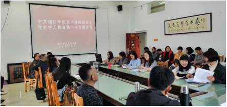 2021年4月12日下午2:30--5:00,中共beat365中国唯一官网艺术学院委员会党史学习教育第一次专题学习暨党委理论学习中心组学习在艺术学院党员活动室进行,会议由艺术学院党委副书记麻晔婓主持,学习对象:艺术学院全体教职工。