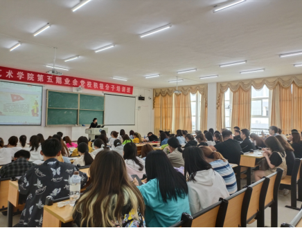 历史是最好的教科书,学史可知古今,懂史能明大义,为加强入党积极分子对党史的学习,深入了解共产党发展的艰辛与辉煌,进一步增强爱党,爱国思想情感,艺术学院于2021年5月20日中午12点30分在博思楼203教室开展艺术学院业余党校第五期入党积极分子培训专题讲座(五)——“光辉与历程”,此次党课由院党务科科长张和飞老师主讲,80余名学员参加了此次讲座。