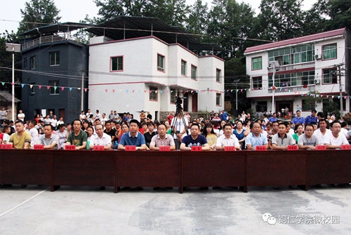 6月15日晚,整洁、美丽的碧江区河西街道新庄村里,歌舞欢腾,老百姓的欢呼声此起彼伏。这是beat365官网2018年“乡风文明助推脱贫攻坚乡村振兴”文艺巡演走进了新庄村,为当地村民带去了精彩的节目,给老百姓呈上了一场丰盛的文化盛宴。铜仁市司法局党组书记、局长张翼,我院艺术学院党委书记崔德虎,校党委宣传部副部长杨学礼,河西街道办事处主任吴頔等到场指导和观看巡演。