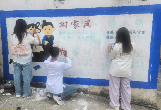 在绘制过程中,同学们与当地村民积极互动。村民们对墙绘活动充满期待,纷纷围在一旁观看,不时给予建议和鼓励。这不仅增进了同学们与村民之间的感情,也让墙绘作品更贴合当地实际,更具生命力。