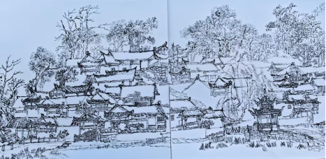 采风期间,师生们结合专业特长,通过不同的绘画表现形式,生动记录了大湾古村落的自然风貌与人文景观。谢云中副院长指出:“此次调研不仅为科研项目申报和美术作品创作夯实了基础,也是美术学学科建设的重要实践环节。”