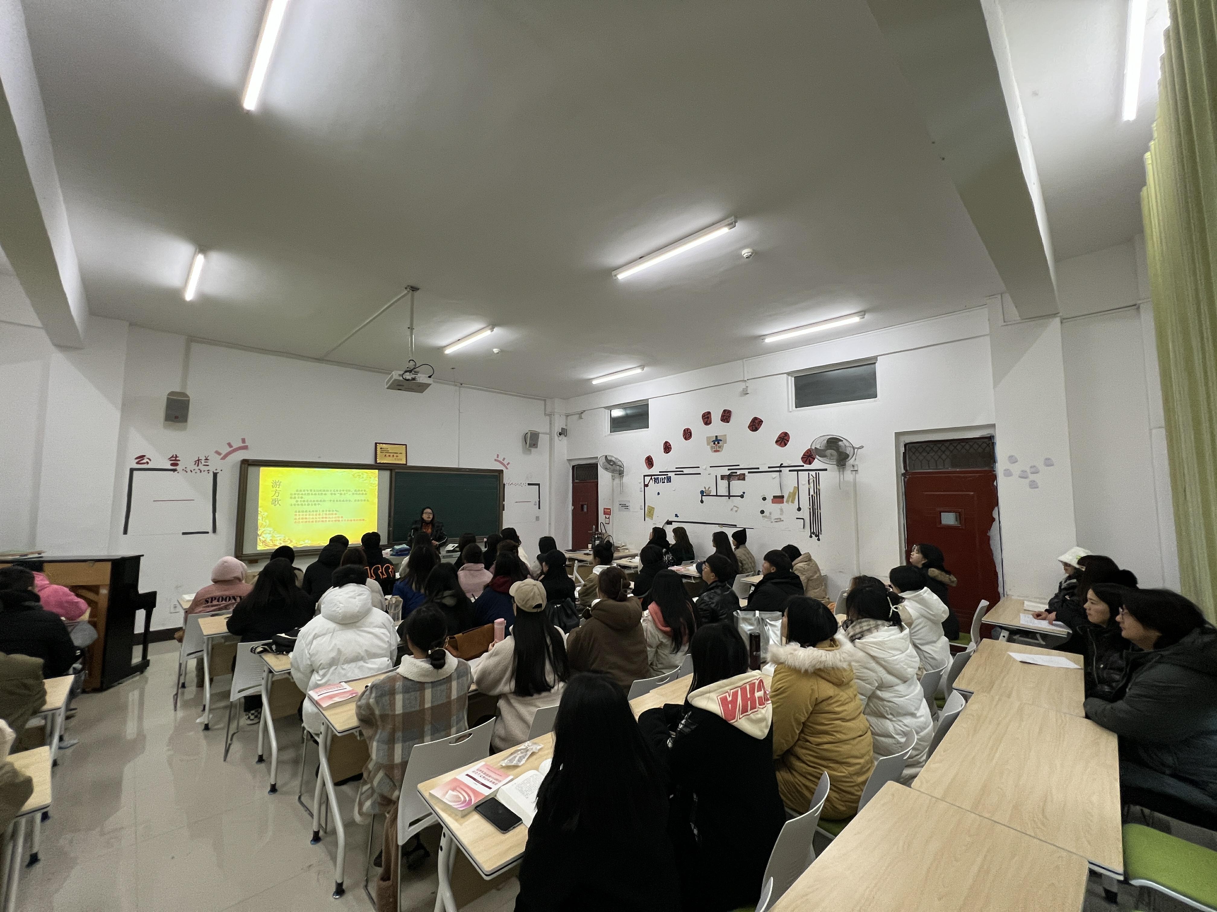 两位老师分别从所在学校立项的银课民族民间音乐、中国音乐史两门课程内容为学生示范,民族民间音乐从对民歌章节进行了讲授,中国音乐史对隋唐时期的音乐进行了讲授。