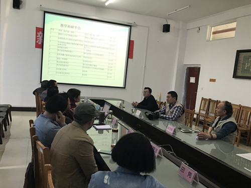 4月16日下午,邯郸学院艺术学院邹永新、王子中、杜菁一行三人来我院参观交流。并在院会议室召开交流座谈会。分党委书记崔德虎、院长李洁、副院长谢云中、美术与设计系主任龙庆华、教务科科长戴腾等参加了此次交流会,交流会由副院长谢云中主持。