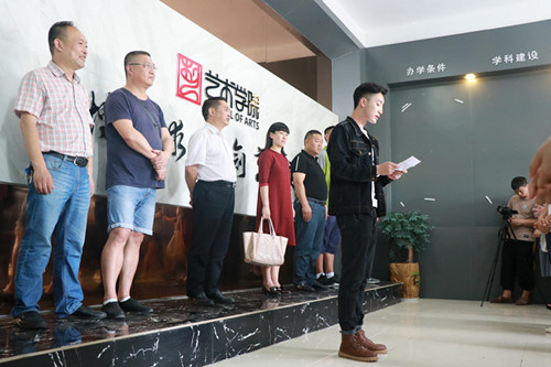 5月29日下午,艺术学院2018毕业设计作品展开幕式在美术楼负一楼展演厅举行。艺术学院党委书记崔德虎教授、学礼副部长、宣传部张朝飞老师、学报编辑部张惠平老师、铜仁职业技术学院潘洪礁老师以及艺术学院师生参加开幕式。