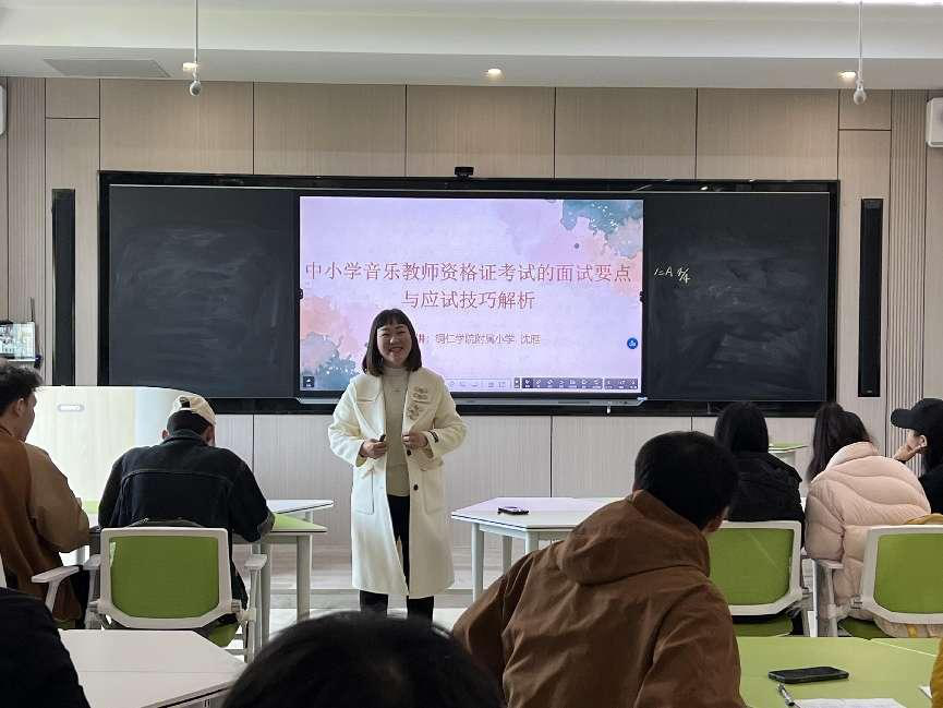 3月30日,我院邀请了beat365中国唯一官网附属小学副校长、音乐专职教师、高级教师沈雁,到我院开展“中小学音乐教师资格证考试面试要点与应试技巧解析”专题讲座。我院2019级音乐学和2020级音乐学全体学生在美术楼智慧教室现场聆听学习。