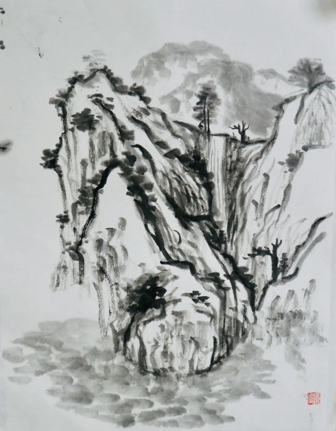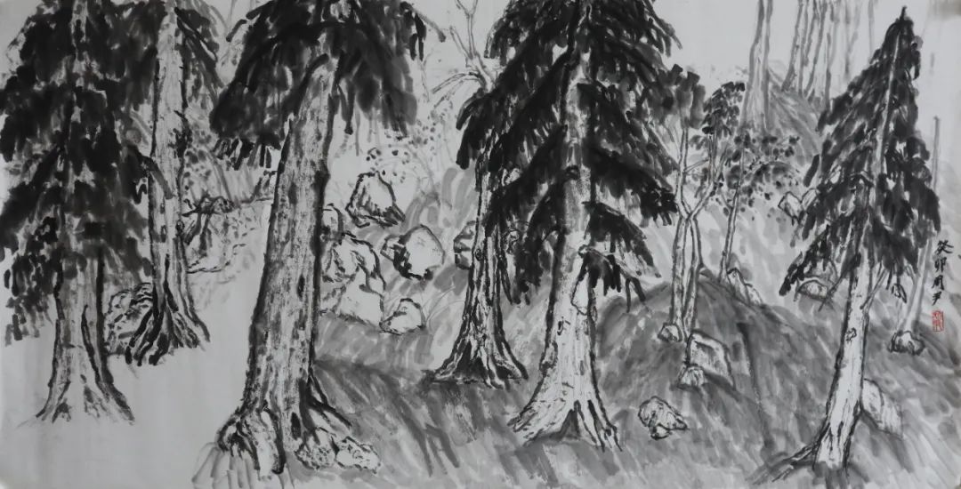 通过这次写生我的收获就是理解了笔墨要用“活”,以前只知道墨是浓淡干湿丰富就行,画面“活”不“活”就看当时运气了。还有就是看了肖老师的写生时的用笔,自己也尝试把墨用饱满,最后画面出来的效果肖老师说有泼墨的感觉,然后去了解了下泼墨这个绘画技法,很好又学到一个绘画技法。
