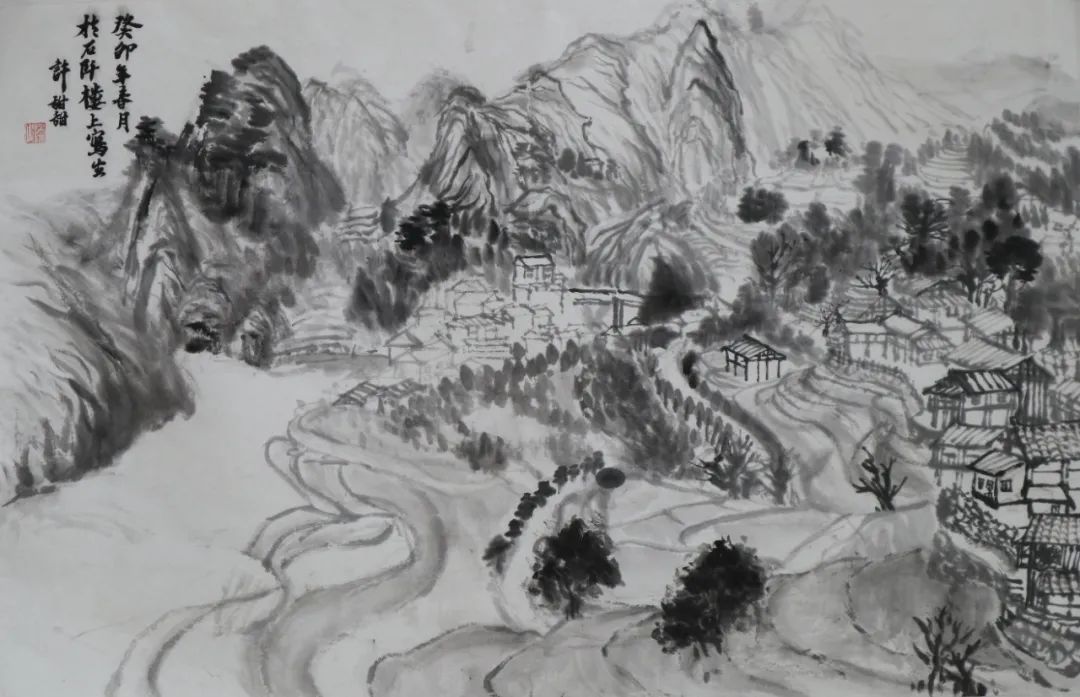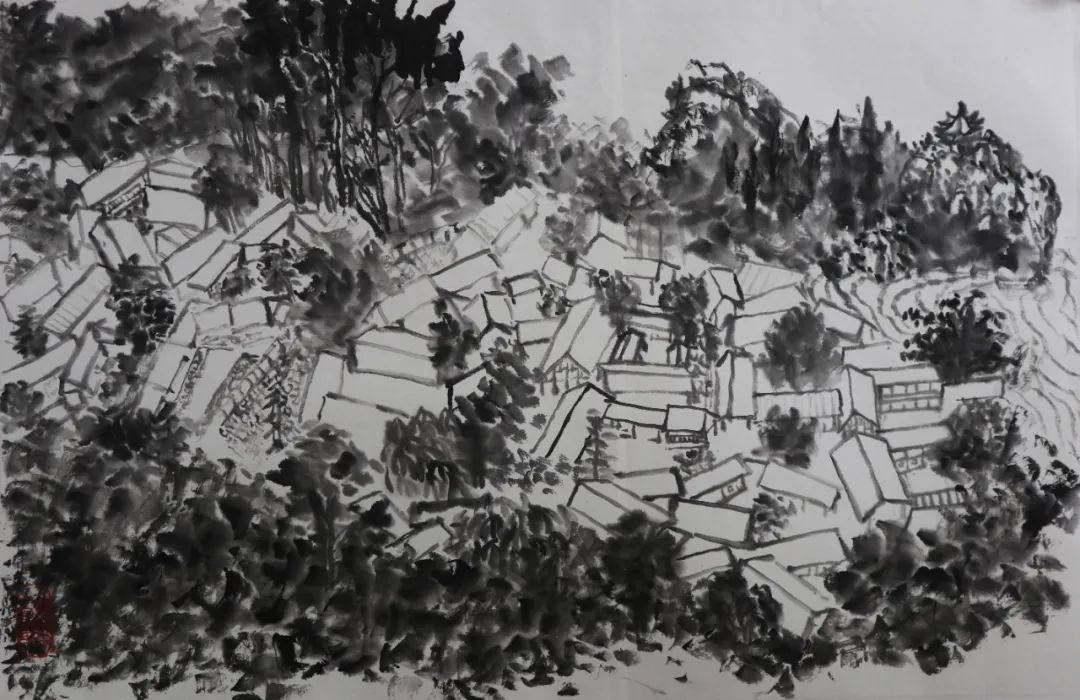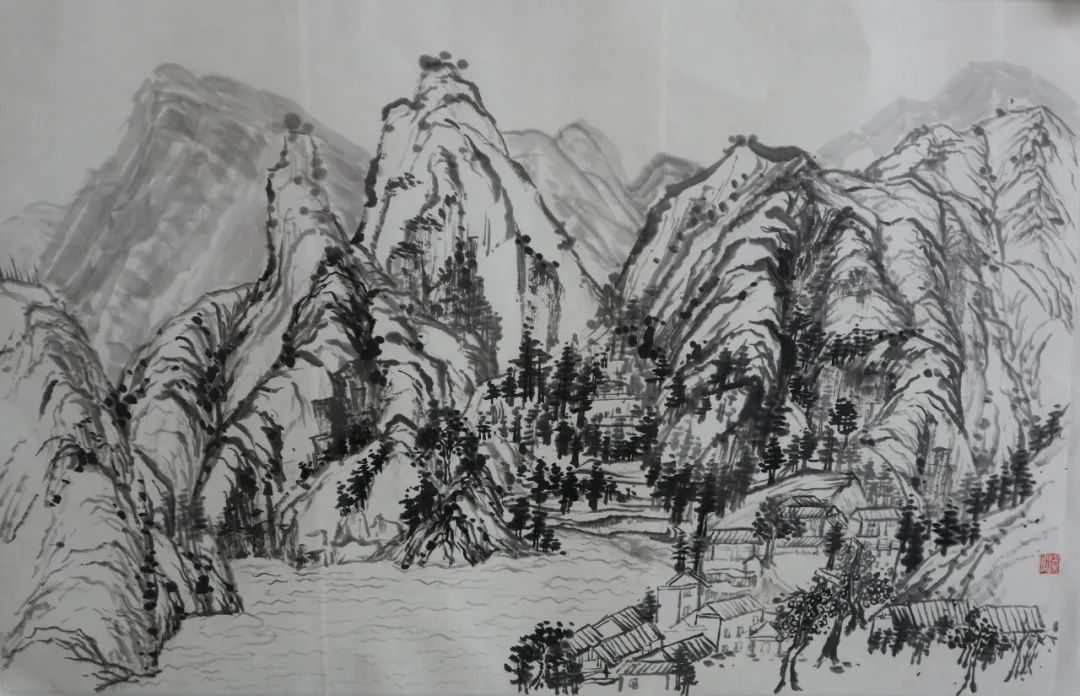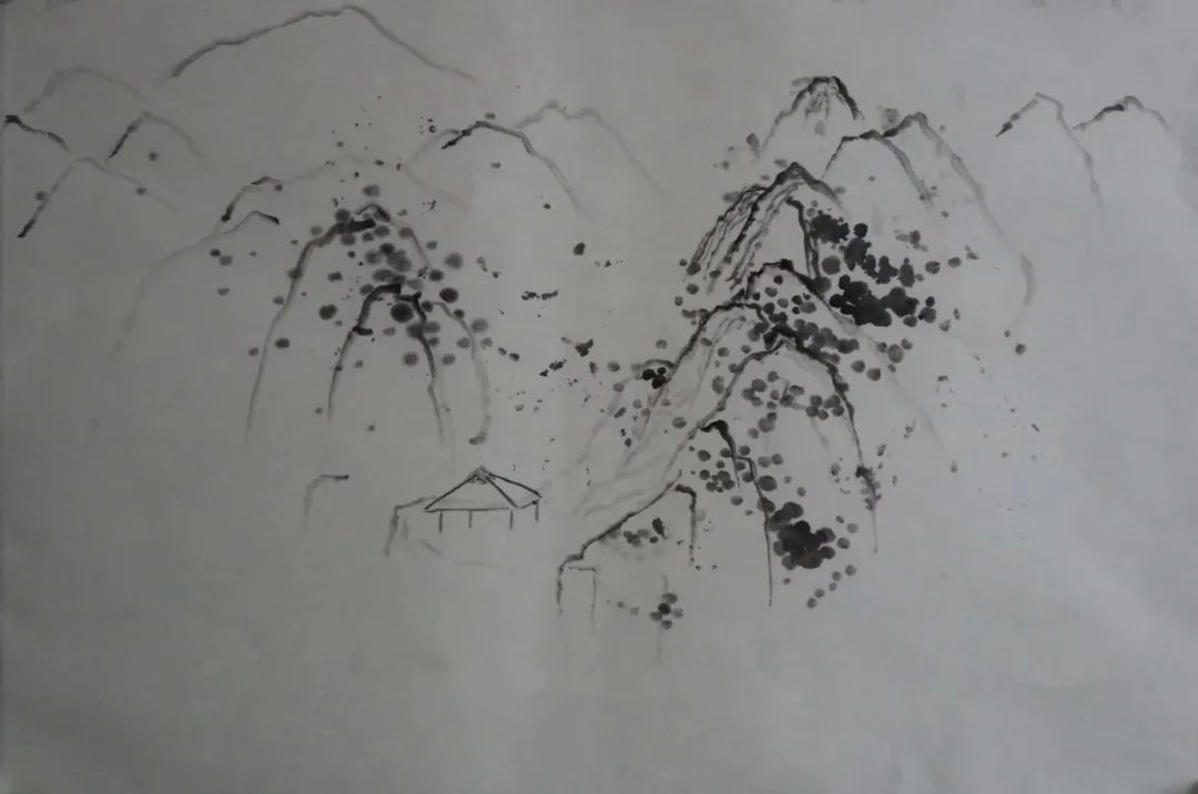 除了以上的问题,其实我学到的更多,如山体、树木、房屋、梯田在山水画中的表现。出去自己画和在别人的画前临摹很不同,可以更轻松,更能表达自己的情感、技法、风格。实践往往会给我们带来很多经验,这次写生分析了大自然的山川规律,站在客观事物面前用笔墨表现出来,也给我带来了更多直观的感受,但要解决的问题还有很多,需要请老师帮助和自己再学习去丰富、深入画面。