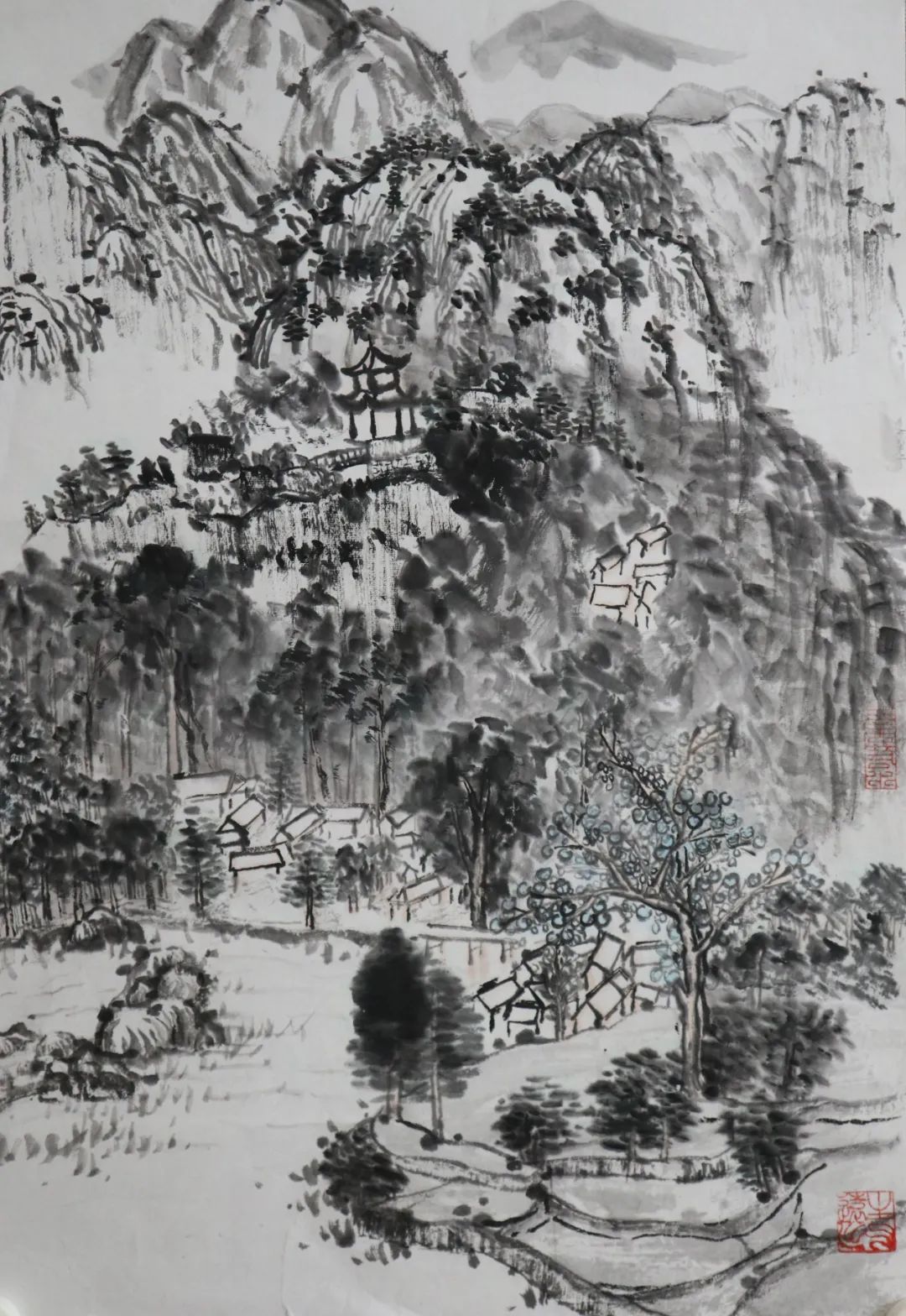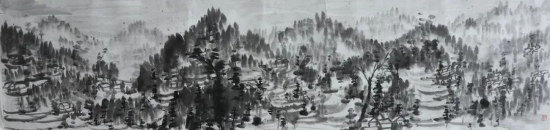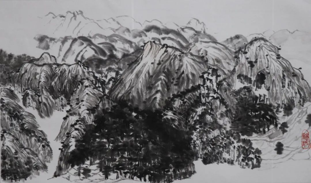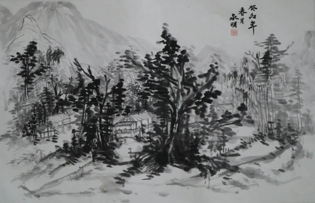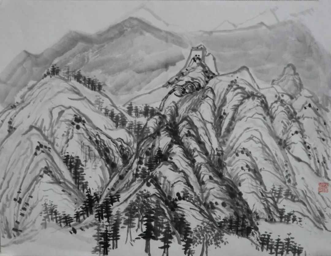 除了以上的问题,其实我学到的更多,如山体、树木、房屋、梯田在山水画中的表现。出去自己画和在别人的画前临摹很不同,可以更轻松,更能表达自己的情感、技法、风格。实践往往会给我们带来很多经验,这次写生分析了大自然的山川规律,站在客观事物面前用笔墨表现出来,也给我带来了更多直观的感受,但要解决的问题还有很多,需要请老师帮助和自己再学习去丰富、深入画面。