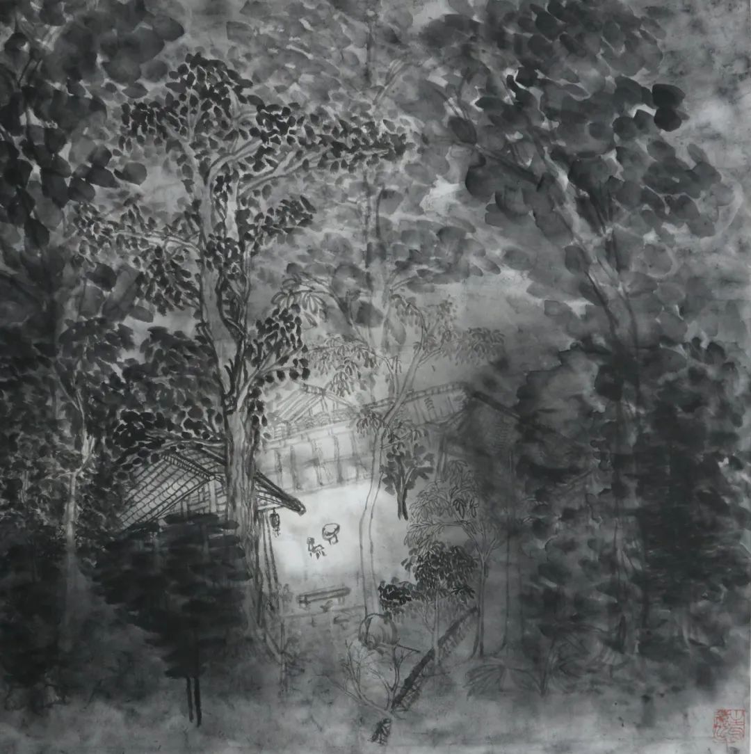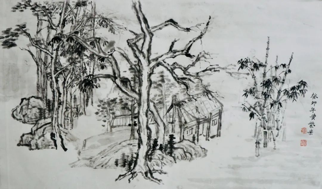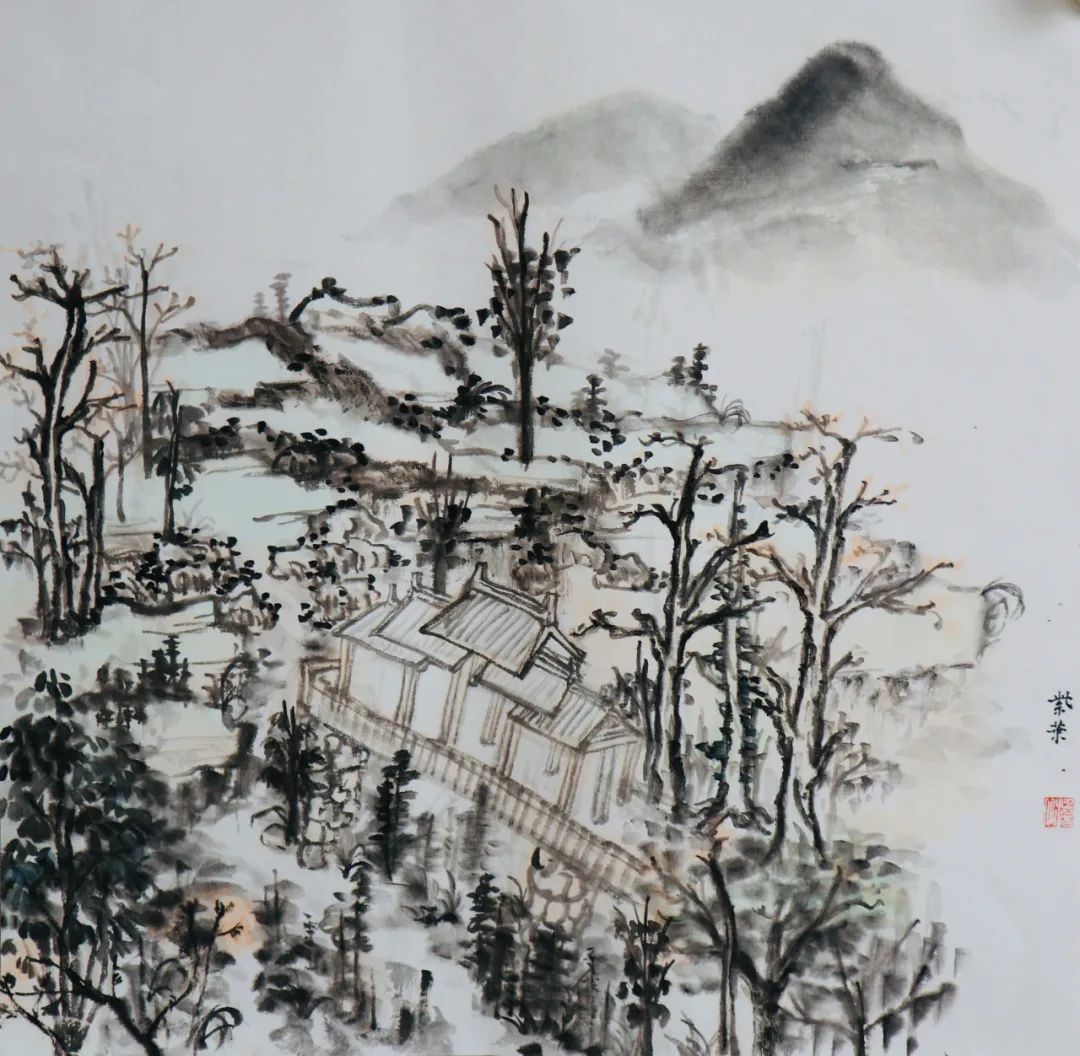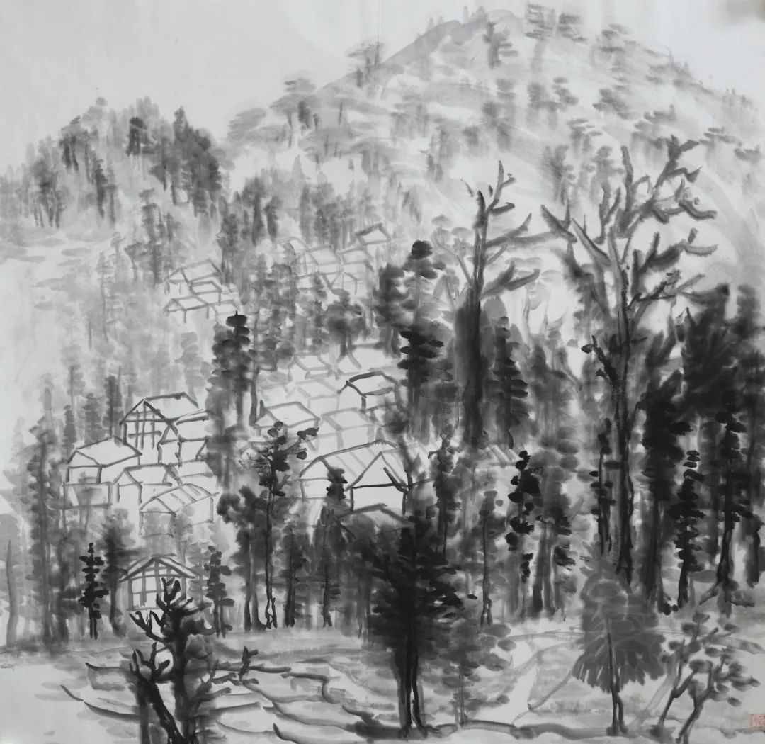 写生之旅很快到来,大家兴致勃勃,期待着这次外出。或许是太久未画,亦是基础掌握不牢,才导致来到现场不敢下笔。全然忘记需要注意的问题,整体的构图,树木、山体的位置,墨色的浓淡干湿,整体的气韵生动。总害怕画错,内心没有底气。而底气的来源于平时的临摹积累,都远远不够。就算之前掌握的一些笔墨技法,也没有灵活运用,脑子没有转起来。与此同时,心情也是十分低落,没有信心。但是,在这短短的七天内,不仅看见了山林和树木,感受到了大自然的美好,而且还学到很多东西,能够区分山水画和风景画;对房屋结构有了一些了解;选取不同的景物的运用;避免画面的散乱;从一种游走和俯瞰的视角来观看。让我不由得感叹写生很难,考虑的因素很多。