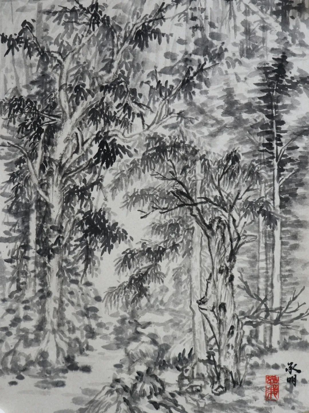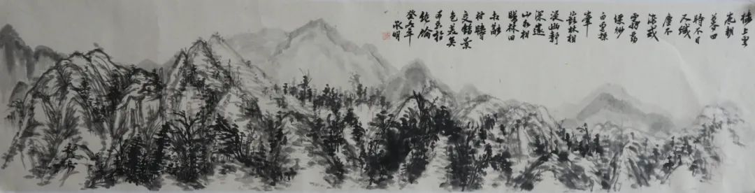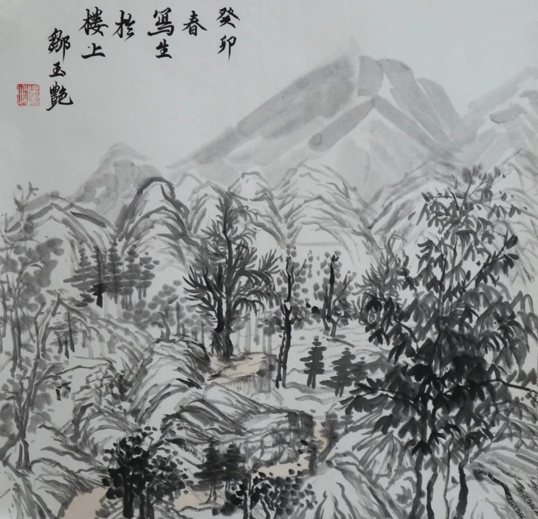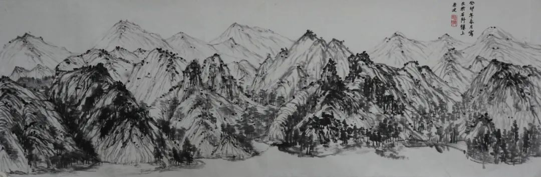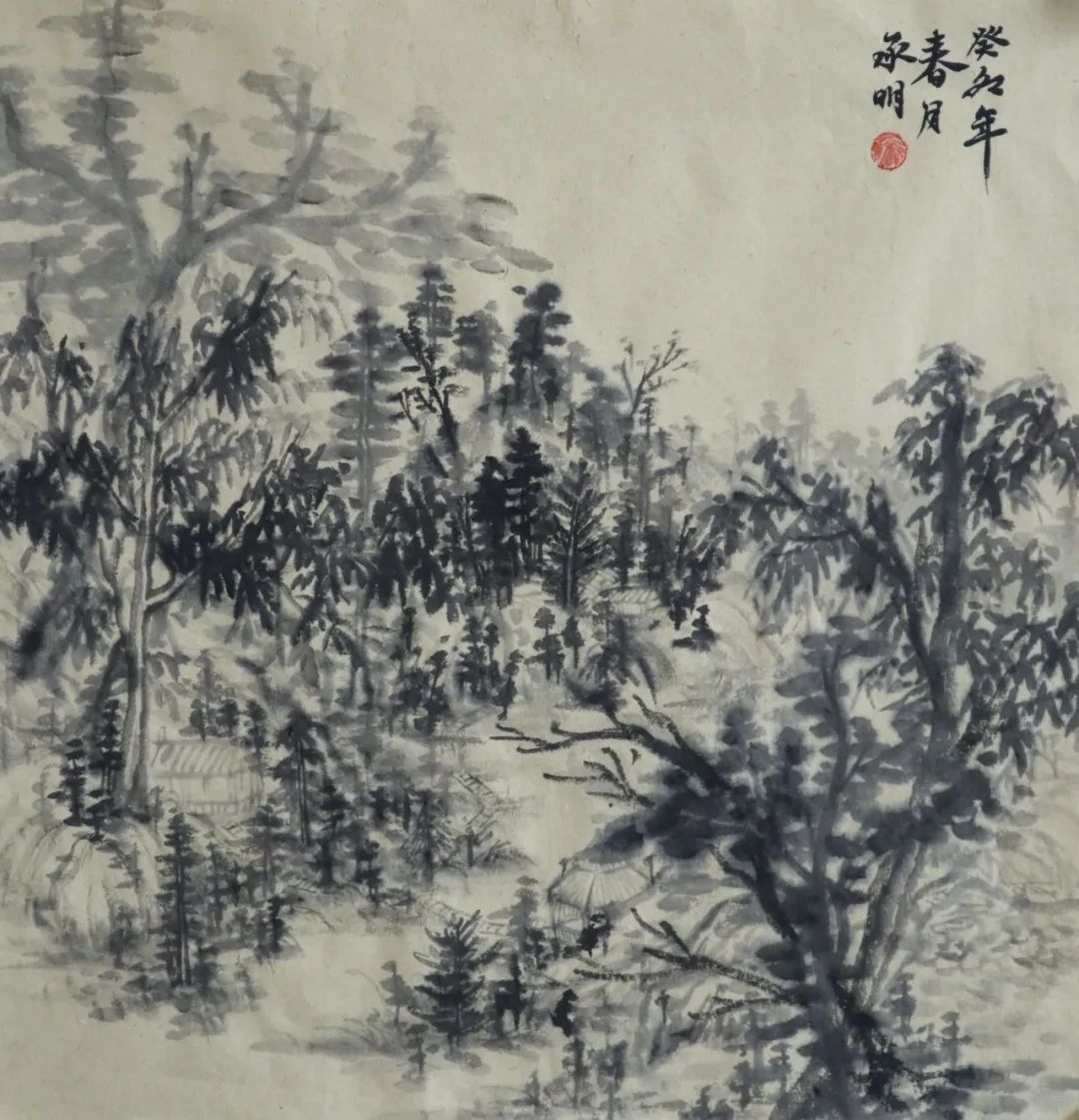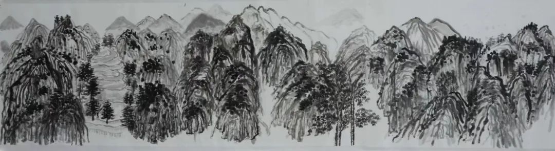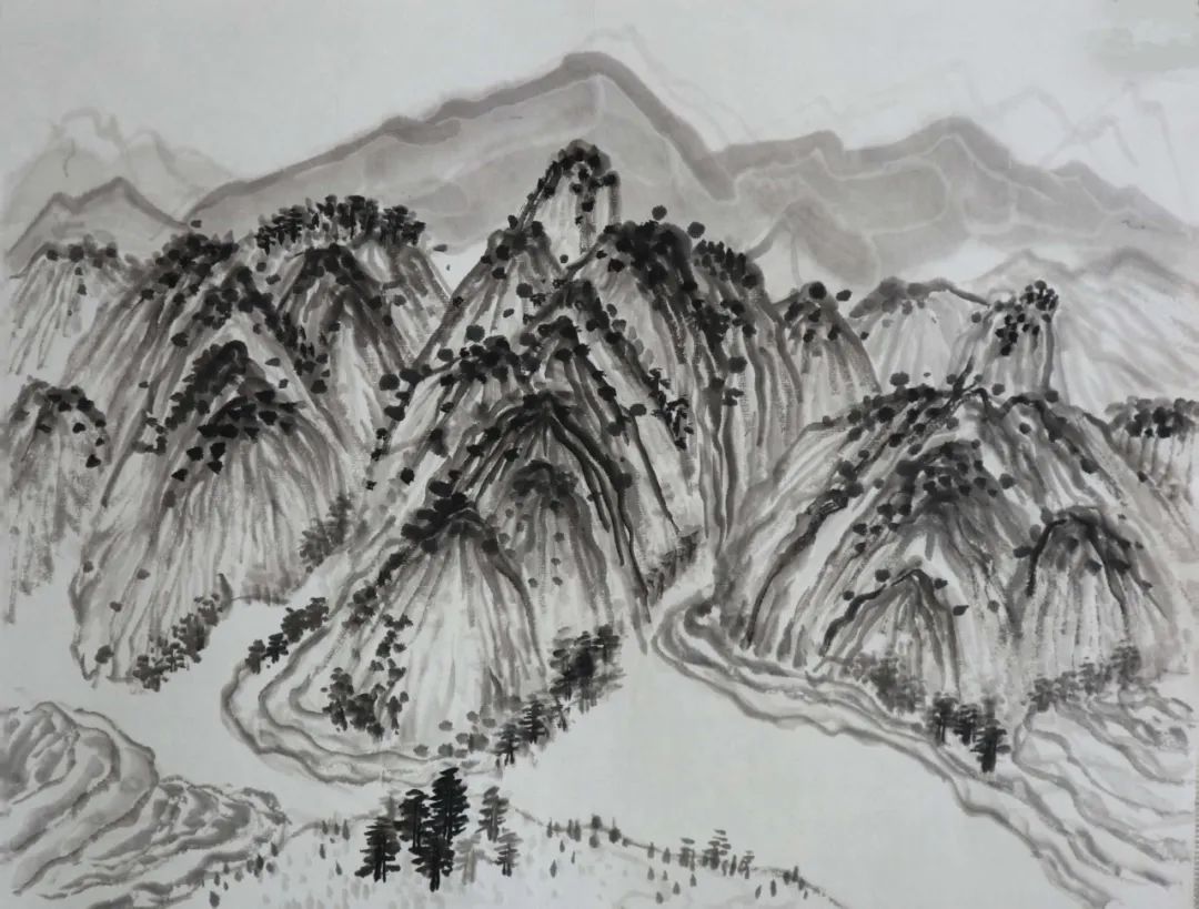 二是自己在意的东西太多,到最后画得一塌糊涂。在绘画中总是想把每一个地方都画好,画得很到位,但最终下来都不是自己想要的,这也使得我整个画面效果并不是那么理想。在这生命力旺盛的春天里,清新润泽树林、连绵不断的山峰、陡峭若削的岩壁......我却没能用自己手中的笔将它表现出来,这对我来说是一种遗憾。也许自己在意一种东西的时候,往往会忘了另一种东西,就如在画一棵树时,我考虑了怎么用笔,怎么去将它的姿态、大小表现的更好,但后面我却忘了这个季节的树应该是浸透人心的(笔墨)。