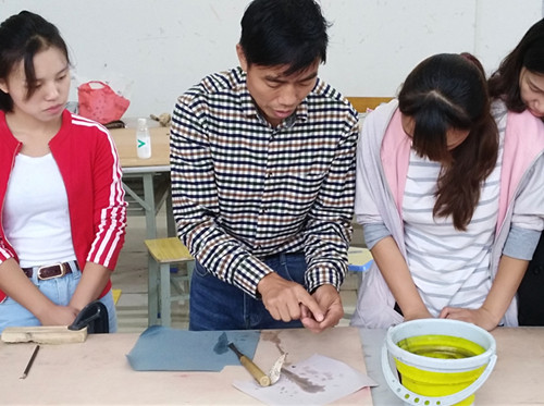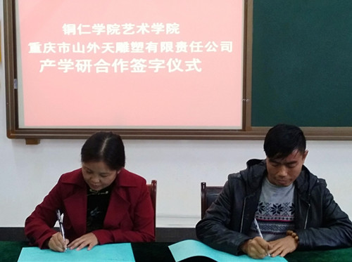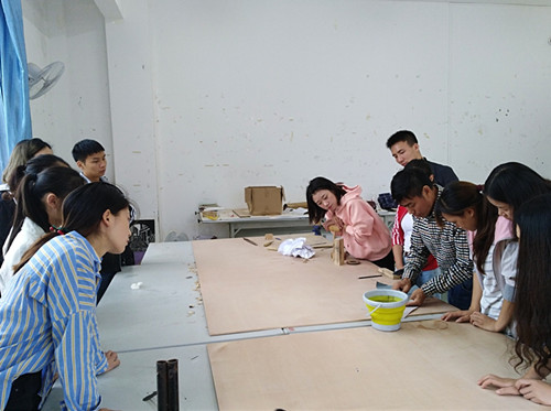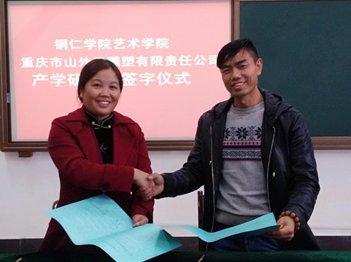 近日,通过相关负责人对重庆山外天雕塑有限公司进行了多方面考察、合作、沟通,beat365官网艺术学院美术与设计系与该公司达成了校企合作共同打造“旅游商品”木雕特色课程,达到产教融合、共同促进发展的产学研合作意向。艺术学院院长李洁教授代表学院和重庆山外天雕塑有限公司董事长周宫平工艺大师签署了校企合作产学研协议,并特聘重庆山外天雕塑有限公司董事长周宫平工艺大师为该客座教授。期间,周宫平工艺大师为了提高同学们对于木雕艺术的学习兴趣,作了题为《用木艺美化生活》的精彩专题讲座,讲座内容首先从木艺的概念、分类开始,其次介绍了木材肌理之美、纹路之美、天然之美、造型之美、功效之美、适用之美等木材特性,再深入讲解了木雕步骤:选材→设计→打胚→粗雕→精雕→打磨→上蜡→成品的创作过程,其后,简介了基本的雕刻刀法以及雕刻所需准备的相关工具和辅料。在同学们《旅游商品》专业阶段课程中周宫平大师对同学们的实际操作学习进行了现场指导,还根据现有的材料创作了雕刻作品,现场教学演示结合理论知识给同学们讲解了木雕艺术的技法,培养了同学们对于木雕艺术浓厚的学习兴趣,增强了学习信心。