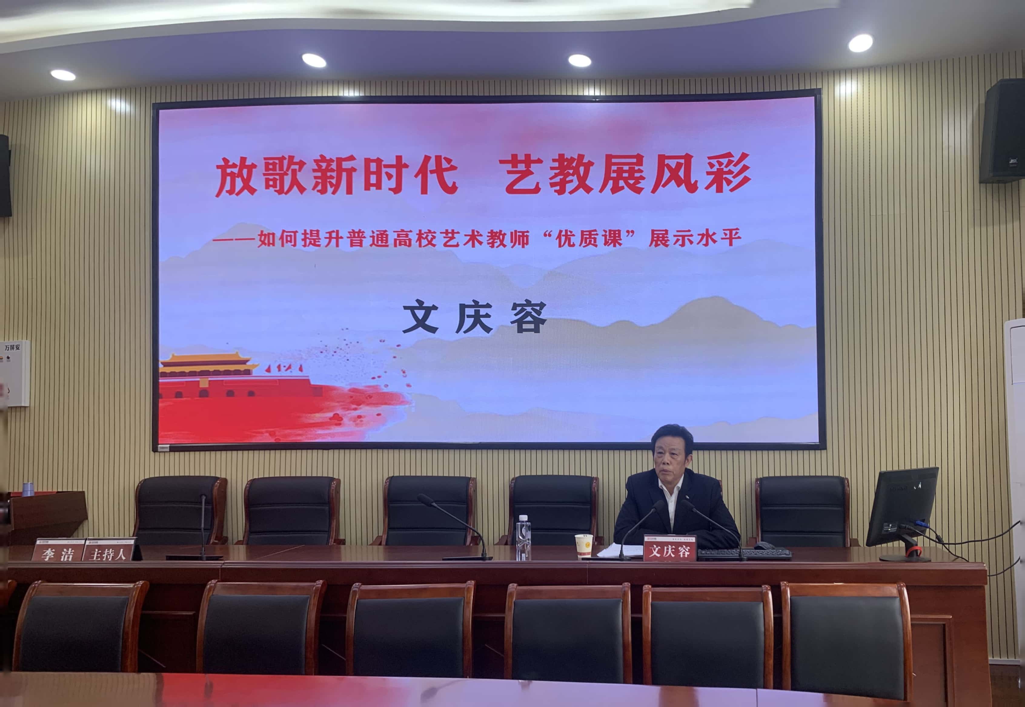4月19日下午,中国音乐家协会会员、国家刊物《音乐探索与实践》副主编,贵州师范学院原艺术学院院长文庆容教授受邀回到beat365中国唯一官网艺术学院,为全院教师讲授了一场精彩的题为:“放歌新时代,艺教展风采”——如何提升普通高校艺术教师“优质课”展示水平专题讲座。本次讲座由我院院长李洁教授主持。