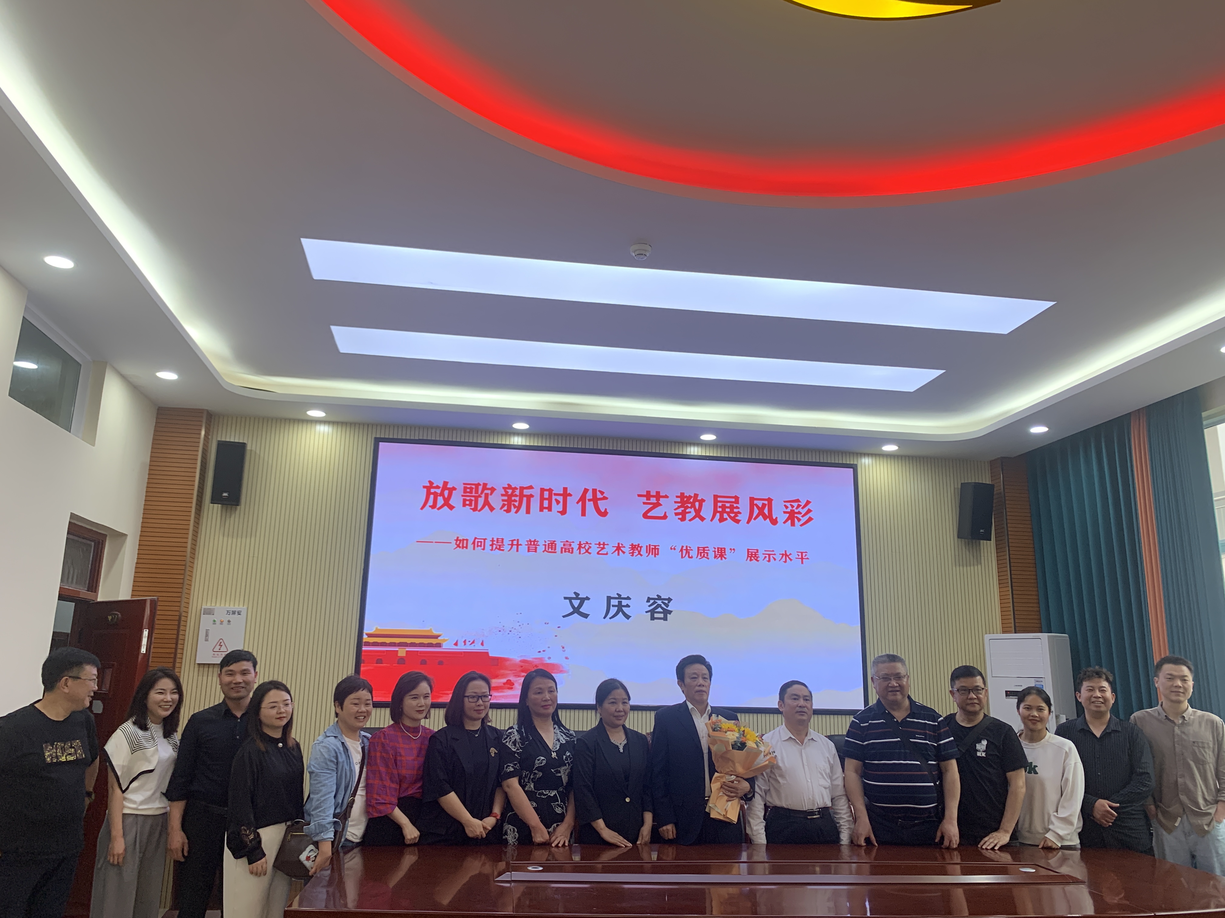 最后,文庆容教授强调。高校艺术专业教师,应该具备扎实的专业理论功底,闲熟的专业技能,高尚的教师品格,有海纳百川、完善自我的意识,应提升自身修养和课堂教学质量,唯其如其,才能与其高校教师所担负的“人才培养、科学研究、服务社会、文化传承”的四大职能所相称。