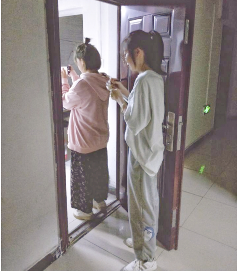 在检查的过程中,学生们礼貌敲门,从一楼到六楼认真的对每一个寝室检查,被查寝人员也十分配合工作,体育部和心理部的同学进行相应照片采集,并记作好打分记录。此次活耗时两个小时。