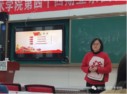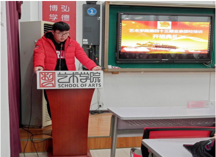为让入团积极分子进一步了解掌握更多的团知识,增强入团荣誉感、对团的基础知识与建设的了解与认识以及思想政治素质等。11月2日,艺术学院于美术楼201教室开展团校培训,本日培训由艺术学院教务科科长张少涛老师、学生党支部宣传部委员余雁鸿老师进行专题讲座,70名学员参加培训。