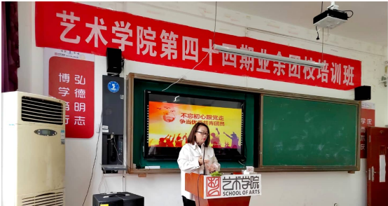 艺术学院第四十四期团校理论培训圆满结束。通过团校培训,同学们明白了共青团员的初心和责任,学习新思想,争做新青年,将会在以后的学习生活中努力成长,跟随党的步伐,为中华民族伟大复兴而奋斗。
